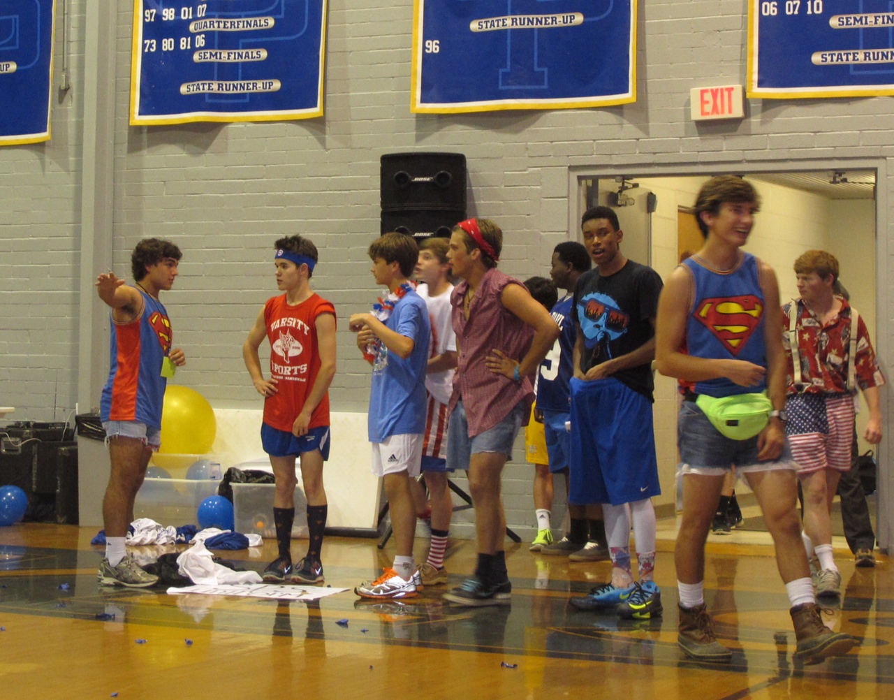 The uniform run was a very strange, but clever, event. It included a kid from each grade, and participants had to put on one of the uniforms from each school. St. Paul’s started off very strong and held the lead. Then, SSA sped up and took the lead on the last runner. She had trouble taking off the uniforms, which gave Kramer Jackson of St. Paul’s just enough time to run down, take everything off in one pull and get the first win for SPS. The SSA lead fell 2-1.