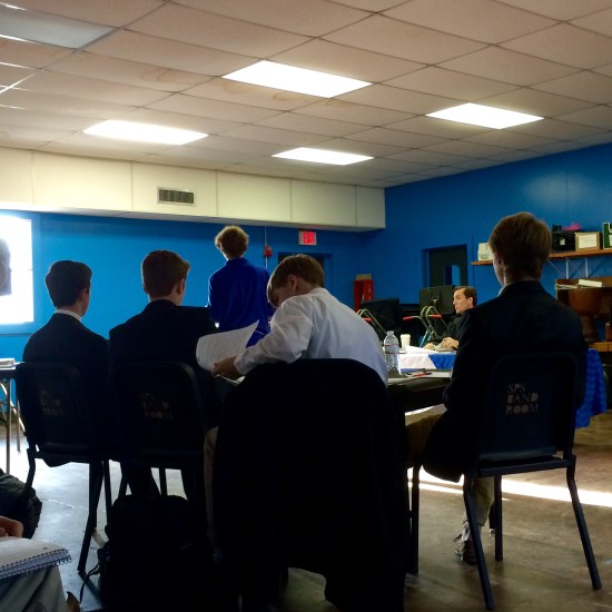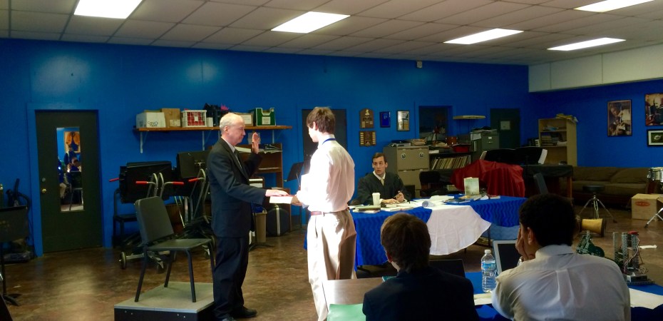 (COVINGTON, La.) – Throughout the week and culminating on Friday, Jan. 30, 2015, Don Midkiff’s Biology classes held mock trials in the band room at St. Paul’s School over whether or not Creationism or Evolution should be taught in schools.