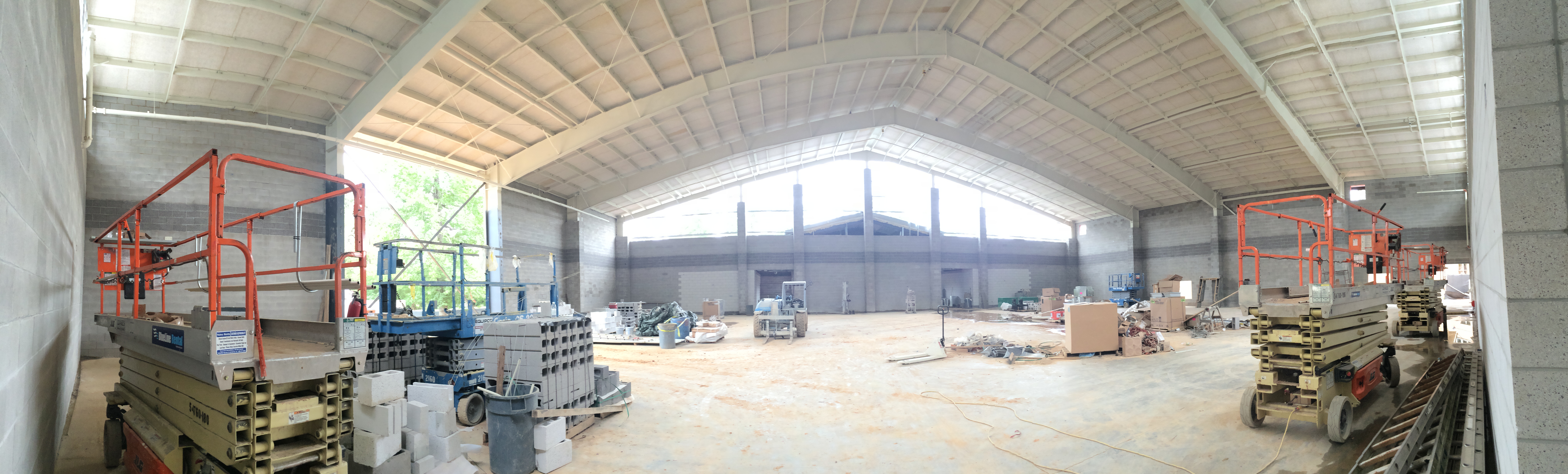 A panoramic view of the gym taken during the summer shows the progress of construction. (photo by Nick Ashton)