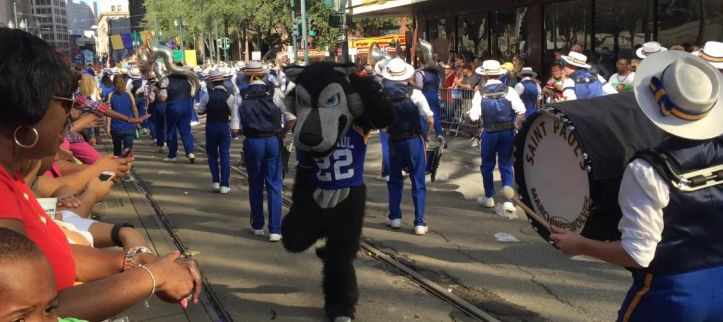 The Wolf grabs attention from the crowds in parades and students during football games, spreading the school spirit from St. Paul’s to New Orleans.