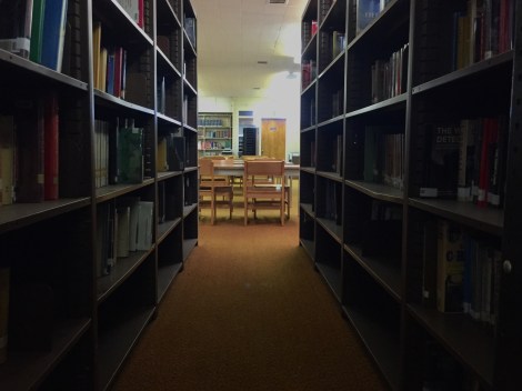 The darkened rows of St. Paul’s underused library indicate its lack of student use. (Photo by Lester Guttuso)