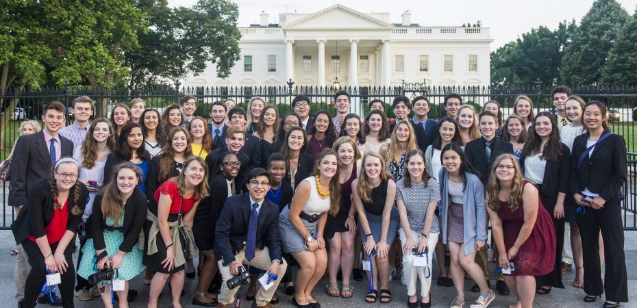 All of the 51 free spirits pose in front of the White House. Each free spirit was defined as a student journalist who has the qualities of creativity, courage, and passion.
