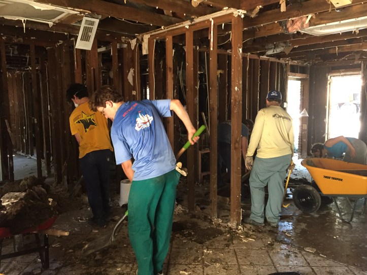(LUMBERTON, Texas) A few weeks ago, a St. Paul’s mother, Denise Sheffield, decided to lead a mission trip to help people whose homes had been ravaged by Hurricane Harvey. We were going to go to Lumberton, Texas, which happened to be where Mrs. Sheffield previously lived and went to church, so the city held a sentimental value to her. About twenty people made the trip to Lumberton — students from St. Paul’s and Mandeville High, as well as parents and alumni.