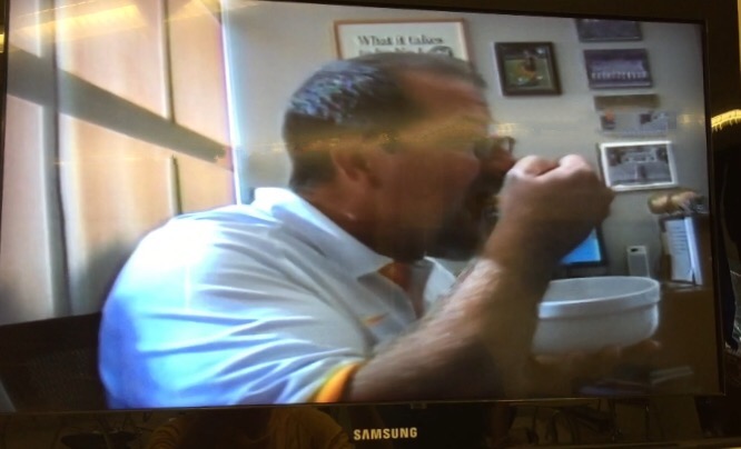 (COVINGTON, La.) The entire school watched in confusion and awe Wednesday morning (Nov. 1) as Dean of Students Ken Sears ate a bowl of cereal live on Wolf TV, the school’s closed-circuit announcement system, for over 10 minutes after forgetting to turn off the record button following daily morning announcements.