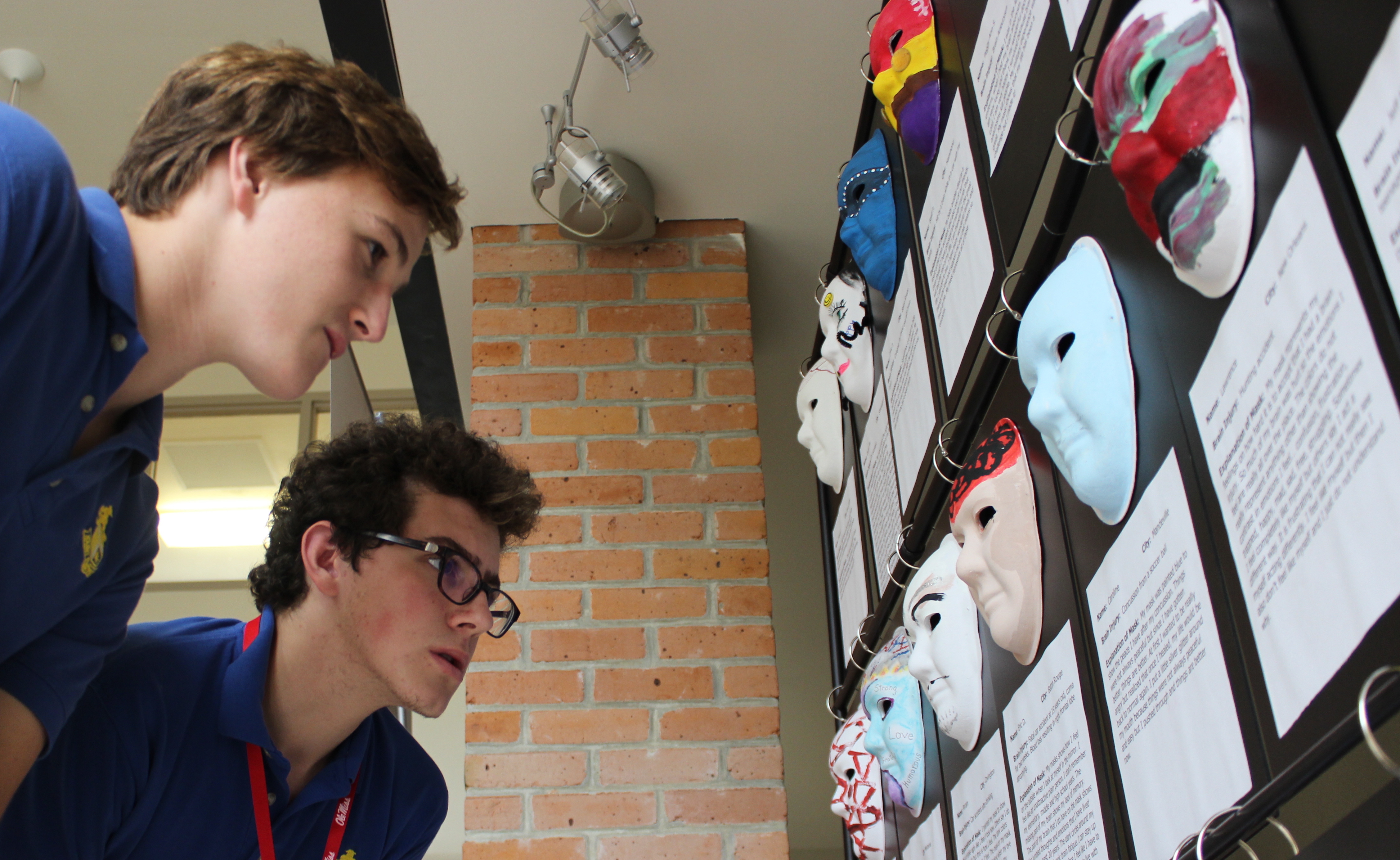 (COVINGTON, La) In the United States, traumatic brain injuries (TBIs) are the leading cause of both death and disability for teenagers. To promote awareness concerning TBIs, the “Unmasking Brain Injury Initiative” traveling art display arrived at St. Paul’s School on Thursday, Nov. 2, 2017, where it resided in the lobby of LaSalle Hall until Wednesday, Nov. 15. Sponsored by the Brain Injury Association of Louisiana, the display showcased hand-painted, individually-decorated masks created by Louisiana residents currently living with TBIs.