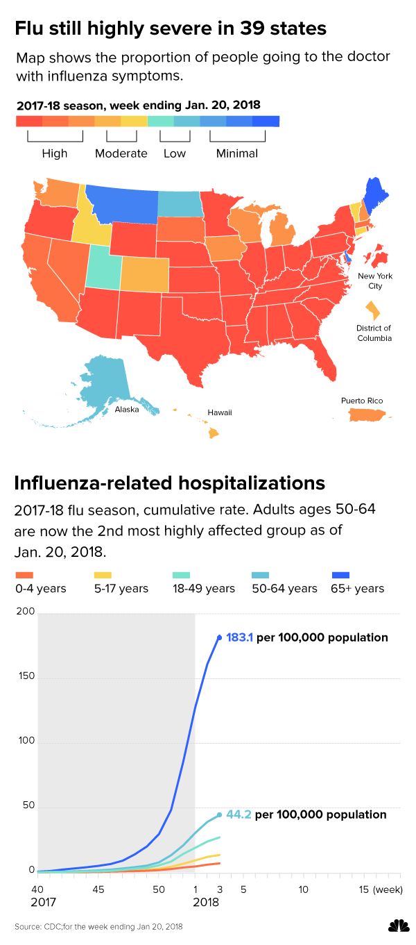 The CDC says baby boomers have been especially affected by this flu season due to them not being exposed to the specific flu strand (H3N2) when they were younger. Furthermore, the H3N2 strain is especially aggressive compared to other flu strains because it causes an intense immune system reaction, subsequently causing affected people to become sicker and even inflaming lungs and airways. Due to this, people with asthma or diabetes have an even more difficult time fighting the symptoms.