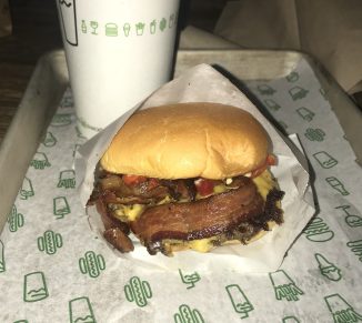 Shake Shack is to the northeast as Five Guys Burgers and Fries is to the south. They are known for their thin griddle burgers and soft, buttered buns. I was a little skeptical at first, thinking it was going to be like any other burger, but I was happily proved wrong. I ordered the SmokeShack burger which is a cheeseburger topped with applewood smoked bacon, cherry peppers and their signature ShackSauce. After a surprisingly short wait, we got our burgers. The bun was ridiculously light and fluffy, which paired perfectly with thick cut bacon. I had never heard of a cherry pepper before this, but these peppers added an interesting and vinegary taste — similar to pickles — to the burger. While the burger was very tasty, it wasn’t enough to put it in the top tier of burger joints. Rating: 7.5 out of 10.