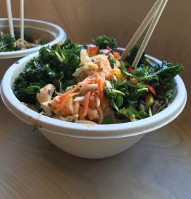 Junzi Kitchen is a modern take on Northern Chinese food. They aimed at taking old traditions and adding modern ingredients and styles. They specialize in Bings (a wheat wrap) and noodle bowls. I went with the bowl. It was a go-down-the-line-and-pick-your-ingredients style restaurant, and it had a plethora of interesting fixings. I loaded my bowl with Knife noodles (thick, fettuccine-like wheat noodles), jaja sauce (a salty, savory soybean sauce), seared chicken thigh (chicken marinated in ginger, rice wine and other Asian spices), Pickled peppers, bean sprouts, kale (bad choice on my part as the kale added a very thick bitter taste), cucumber, chili oil, and soy sauce. The fresh, cold vegetables with the warm chicken and noodles was very refreshing. Deep, spicy and savory flavors were added from the jaja sauce and chili oil. I went in this restaurant knowing nothing about this food, and came out very full and satisfied. The dedication to their craft is very impressive. Rating: 10 out of 10.