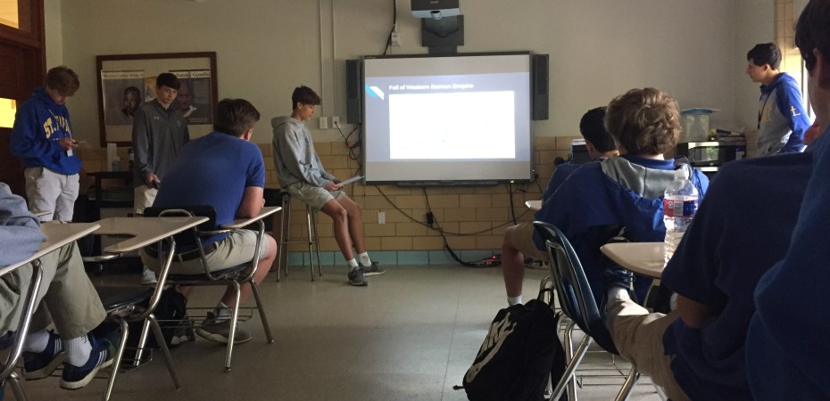 (COVINGTON, La.) Sophomores in Kevin Moore’s World History Honors class recently completed their research papers on the history of one of six European countries: Prussia, England, Spain, Russia, France or Germany.