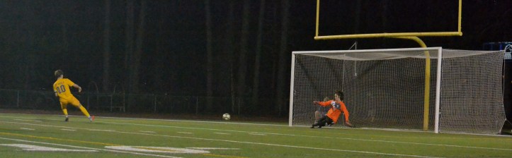 The Wolves started off slow, only scoring one goal in the first half of regulation. Walmsley’s first goal of the night came off a penalty kick, to put the Wolves up 1-0 midway through the first half. The SPS defense almost looked lackadaisical in the first half, and the Skippers got through the defense four times. Senior Goalkeeper Trace Roberts had two impressive saves, meeting the Skippers offense at the point of attack. Senior Forward Ty Priola, when asked about the first half, said, “We started slow, but then we picked up the pace and were able to break them down.”