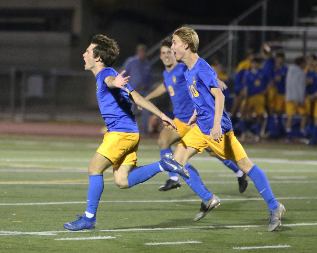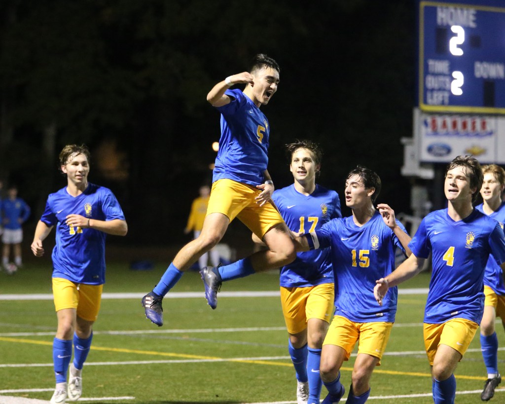 At the half, the wolves regrouped and took control of the game with their iconic suffocating attacking style. It only took 11 minutes for St. Paul’s to find themselves ahead by another outrageous finish. Senior Captain Michael Dufour flicked the ball on to Schwing at the 29 yard-line. Schwing launched an unbelievable curling shot into the upper corner 32 yards away. “I was in disbelief. I just ran on to the track and jumped onto the railing. I knew I could have gotten a yellow card, but it was just one of those moments,” said Schwing.