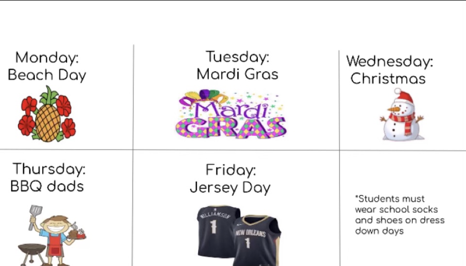 This week is Spirit Week at St. Paul’s. Each day is a different dress down theme. On Friday, students will compete in a Kahoot in each classroom where the winner of each class will compete against the other winners. The top three students will compete against the top three students at St. Scholastica Academy.