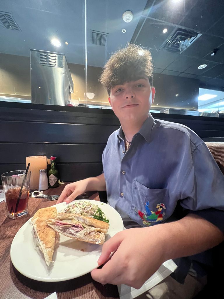 Pictured from left to right: Saint Paul’s Senior Sam Gold eats Barbecue Ribs; Saint Paul’s Senior Mason Schwall enjoys his Cuban Sandwich with Coleslaw; Saint Paul’s Seniors Sam Gold, Brody Lanier, and Mason Schwall stand outside the establishment