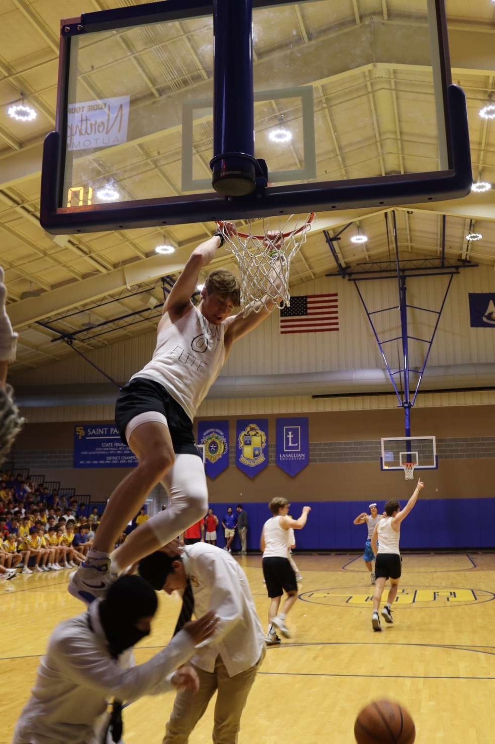 The students seriously showed up in this final match: cheering, screaming, and clapping, particularly when Saint Paul’s senior John Baricev crossed up a defender and slammed the ball in for a dunk.