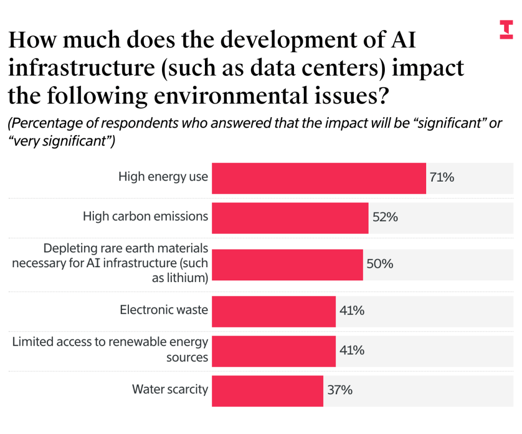 The hardware that powers AI, such as GPUs, requires the extraction of lots of rare earth minerals and other raw materials. This process is resource-intensive, depletes natural resources, and can lead to environmental degradation and pollution.
