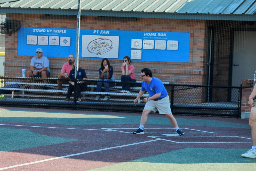 One player, Gary Miller, was struggling to get on base, striking out in his first two at-bats. Then, after some instruction from Coach Jamar Mitchell and some mentors, he walked up to the plate for his third at-bat and had a contact hit that got him onto base with everyone cheering him on as he sprinted down the baseline.